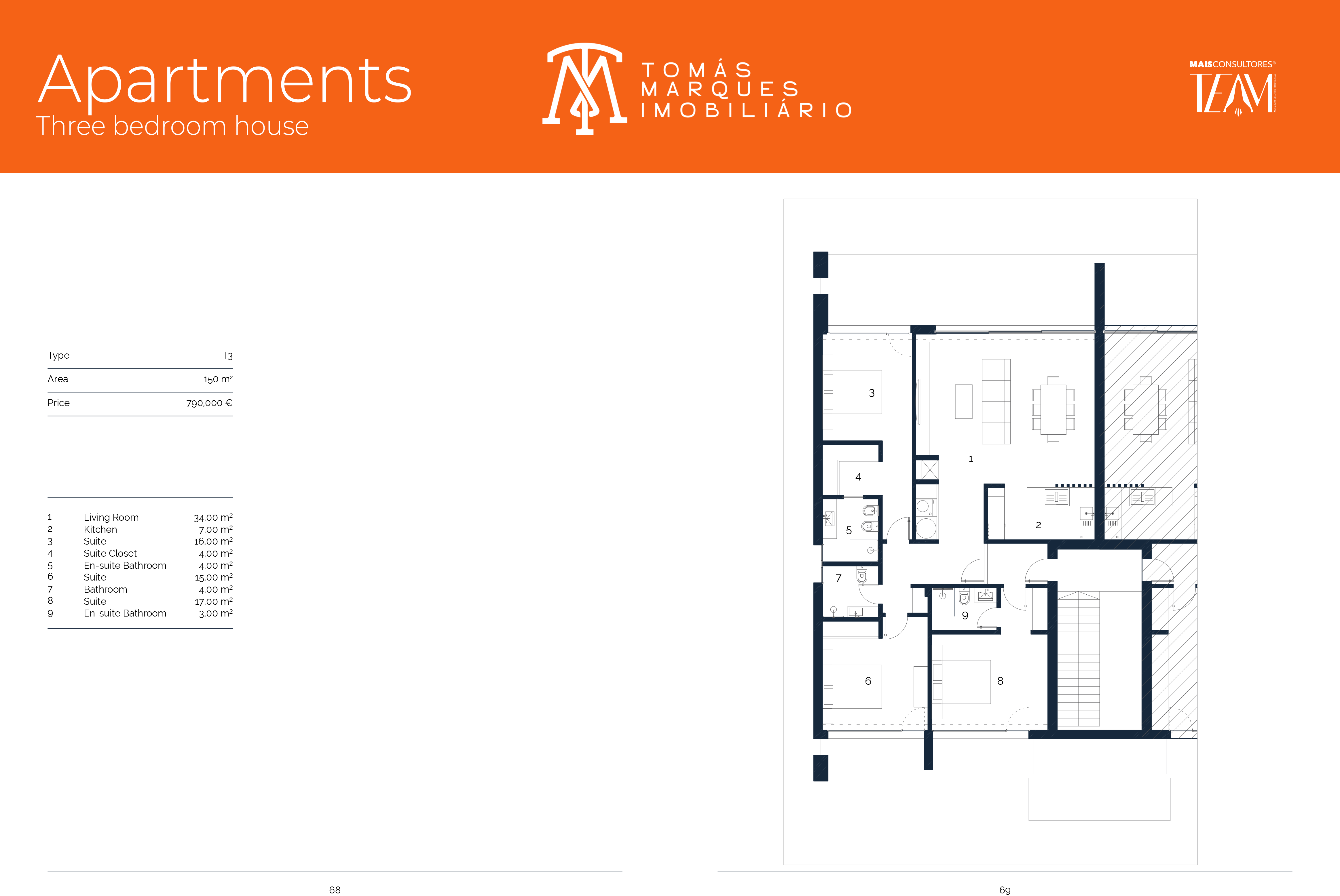 O apartamento é composto por duas suítes e um quarto, uma ampla sala de estar e jantar em open space, cozinha totalmente equipada e áreas generosas com excelente luminosidade natural, graças aos amplos vãos envidraçados que reforçam a ligação entre o interior e o exterior. A decoração privilegia materiais de inspiração natural, tons neutros e texturas orgânicas, criando um ambiente sofisticado, acolhedor e tranquilo.